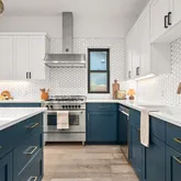 - Room Description: Stunning kitchen with Bertazonni gas range, stylish hex backsplash and two tone cabinets and quartz counters ontop.