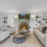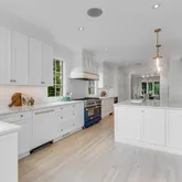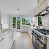 The main level sets a tone of understated grandeur, with soaring 9+ foot ceilings and sun-drenched spaces throughout. The formal living room, framed by oversized windows and anchored by a wood-burning fireplace, invites both quiet moments and lively gatherings. The newly reimagined kitchen—part of the 2023 renovation by renowned architect Dale Overmyer, with construction by John Cecchi—is a showpiece designed for connection, featuring premium finishes and a seamless flow into the family room and dining area, all exuding warmth and sophistication.