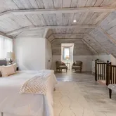 Upstairs, each of the six bedrooms has its own story. Three bedrooms include a Jack-and-Jill bath arrangement—perfect for family living—while another features a private en suite. The light-filled Parisian-style suite offers its own full bath and private feel, ideal for long-term guests, an au pair, or an artist’s retreat.