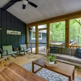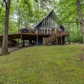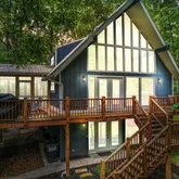 Step into the charm and comfort of this beautifully updated chalet-style home—where rustic character meets modern convenience. Nestled on 2.29 gently sloped wooded acres, this inviting property offers a peaceful sense of privacy with room to relax, entertain, or simply enjoy the surrounding nature. From the moment you arrive, you'll notice thoughtful details inside and out: a spacious front deck for gathering, a cozy covered side porch for morning coffee, and a fully fenced backyard perfect for play,...Step into the charm and comfort of this beautifully updated chalet-style home—where rustic character meets modern convenience. Nestled on 2.29 gently sloped wooded acres, this inviting property offers a peaceful sense of privacy with room to relax, entertain, or simply enjoy the surrounding nature. From the moment you arrive, you'll notice thoughtful details inside and out: a spacious front deck for gathering, a cozy covered side porch for morning coffee, and a fully fenced backyard perfect for play, pets, or peaceful evenings under the stars. Inside, cathedral-style windows fill the home with natural light and offer stunning views of the treetops. At the heart of the home is a dramatic double-sided wood-burning fireplace that spans three levels, adding both warmth and a wow factor to the living spaces. Recent upgrades include energy-efficient windows, an updated kitchen, renovated bathrooms, and a finished basement offering flexible living space. Upstairs, a private lofted primary suite offers a serene escape above it all. The home is being offered fully furnished, making it a perfect fit for those seeking a move-in-ready primary residence or a furnished home for mid-term rental use (30+ day stays). Whether you're relocating, investing, or simply looking for a tranquil place to call home, this property delivers a rare mix of comfort, charm, and flexibility. Schedule your private showing today and experience all that this unique property has to offer!