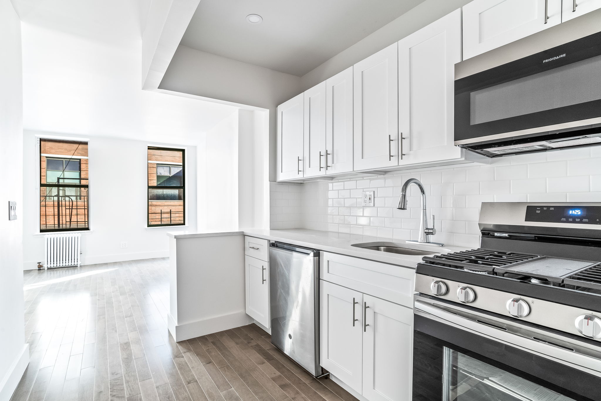 As you enter this fully renovated half-floor apartment and walk into the north-facing living room, you are immediately greeted with two large over-sized windows that let in tremendous light. EVERYTHING...This STUNNING GUT-RENOVATED 1-bedroom/1-bathroom apartment is located on West 55th Street in the very desirable north section of Hell’s Kitchen/Midtown West and is set within an established pre-war co-op just a few blocks away from Central Park, Columbus Circle, Lincoln Center and the heart of Midtown.