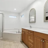 - Interior Features: Breakfast Area, Tray Ceiling(s), Ceiling Fan(s), Double Vanity, Entrance Foyer, Jetted Tub, Main Level Primary, Primary Suite, Pull Down Attic Stairs, Split Bedrooms, Separate Shower