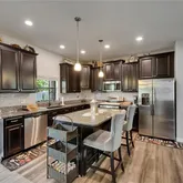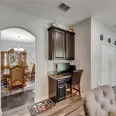 Discover this stunning 3,711 sq. ft. home nestled in the exclusive Executive section of Sereno, a premier master-planned community offering tranquil surroundings and resort-style amenities. This beautifully maintained home features outstanding curb appeal with a three-car side-load garage, etched concrete driveway, and lush landscaping. Inside, a two-story open foyer with a grand wood staircase welcomes you into formal living and dining rooms adorned with rich wood floors and stylish fixtures. Natural sunlight radiates throughout the home, enhancing the warmth and elegance of every space. While the home offers defined formal living areas, the kitchen and family room seamlessly blend into an open great room concept, perfect for modern living and effortless entertaining. The kitchen is an entertainerās dream, complete with 42ā staggered espresso cabinets, granite countertops, subway tile backsplash, a large center island, two-sided dry bar, built-in desk, and a spacious eat-in area with sliding glass doors that lead to a covered lanai. Luxury vinyl flooring adds durability and charm, and the peaceful outdoor spaceāfeaturing epoxy flooring, conservation views, and no rear neighborsāextends the living area beautifully. Downstairs also includes a private den or guest suite with a full bath, ideal for multigenerational living. Upstairs, enjoy a massive 21x21 game/media room and a luxurious primary suite with double French doors, a sitting area, spa-like bath with dual vanities, garden tub, glass shower, and dual walk-in closets. Three additional spacious bedrooms share a full bath, and the laundry room is conveniently located upstairs. Energy-efficient features include dual HVAC, a hybrid AO Smith water heater, water softener, and irrigation system. Sereno residents enjoy access to a clubhouse, resort-style pool, and moreāoffering the perfect blend of elegance, comfort, and community.