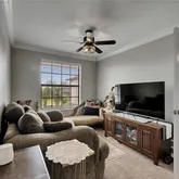 - Interior Features: Ceiling Fan(s), Crown Molding, Eating Space In Kitchen, High Ceilings, In Wall Pest System, Kitchen/Family Room Combo, Stone Counters, Walk-In Closet(s)