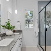 - Interior Features: Bathtub/Shower Combination, Ceiling Fan(s), Double Vanity, Entrance Foyer, High Ceilings, Kitchen Island, Pantry, Quartz Counters, Shower Only, Smooth Ceilings, Storage, Walk-In Closet(s), Walk-In Shower, Water Closet