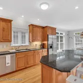 - Kitchen: Floor - Wood, Sliding Door, Pantry, Center Island