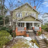 The family...Nestled on a quiet street in the desirable historic Glenwood-Brooklyn neighborhood, this quintessential Raleigh Craftsman Four-Square, built in 1915, sits proudly high on the street and is truly one of a kind—brimming with charm and character. A large rocking-chair front porch welcomes you into a home where historic craftsmanship shines, from the original hardwood floors throughout to the 10-foot ceilings on the main floor and elegant transom windows that flood the space with natural light.