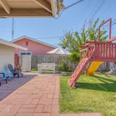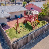 Enjoy the backyard's fruit trees, including orange, and apricot, making it a gardener's paradise. The kids will love the play structure, making it perfect for family gatherings and entertainment. The low maintenance front yard offers wisteria, lavender, Indian sage, and rosemary, it is perfect for busy families.