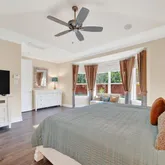 - Interior Features: Breakfast Bar, Butlers Pantry, Crown Molding, Double Vanity, Entrance Foyer, High Ceilings, Kitchen Island, Kitchen Family Room Combo, Bath In Primary Bedroom, Pantry, Quartz Counters, Soaking Tub, Separate Shower, Tub Shower, Vanity, Walk In Pantry, Window Treatments, Ceiling Fans, Programmable Thermostat