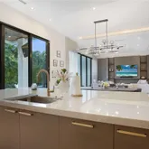 The open-concept interior showcases sleek architectural lines, designer finishes, and abundant natural light throughout. A private elevator provides effortless access to all levels, while the chef-inspired kitchen anchors the heart of the home—ideal for hosting and gathering.