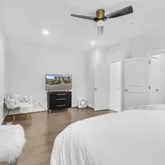 • Ground Level: Versatile rec room (perfect as a home gym or flex space), a convenient half bath, ample storage, and direct garage access • Main Level: Bright, open-concept kitchen with a gorgeous tile backsplash and an oversized island, ideal for cooking or entertaining. Flows seamlessly into the dining area, light-filled living room, and a large back deck for outdoor relaxation. Flows seamlessly into the dining area, light-filled living room, and a large back deck for outdoor relaxation • Third Level: Expansive owner’s suite with soaring ceilings, large windows, a luxurious ensuite bath (double vanity, walk-in tile shower, massive closet), plus a second generous bedroom with its own ensuite bath and oversized closet. Includes a modern laundry room with newer washer/dryer (included). Includes a modern laundry room with newer washer/dryer (included) • Top Level: Spacious entertaining area opening to a rooftop terrace – perfect for a home office, al fresco dining, or soaking in the views. Features a third bedroom with a loft, an ensuite bath and walk-in closet. Prime Location: Nestled in Alexandria’s west end, you’re steps from the proposed Upland Park and minutes from Amazon HQ2, Shirlington, Old Town Alexandria, Downtown DC, the Pentagon, and Reagan National Airport. Enjoy easy access to I-395, NVCC, Mark Center, Bradlee Shopping Center, and Landmark. Public transit is a breeze with a Metro bus at the corner of Fillmore and an express bus to the Pentagon just one block away. Why Rent Here? Live in a move-in-ready, modern townhome in a neighborhood poised for growth. Perfect for professionals, families, or anyone seeking style and convenience in a dynamic location.
