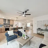 - Interior Features: Breakfast Bar, Ceiling Fan(s), Double Vanity, Eat In Kitchen, Kitchen Island, Main Level Master, No Interior Steps, Open Floorplan, Pantry, Quartz Counters, Recessed Lighting, Walk In Closets