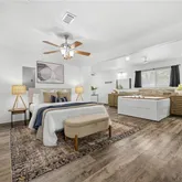- Interior Features: CeilingFans, DoubleVanity, HighCeilings, JettedTub, PullDownAtticStairs, SplitBedrooms, ShowerOnly, SoakingTub, SeparateShower, TubShower, WalkInClosets, BreakfastBar, GraniteCounters, Pantry