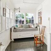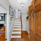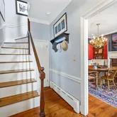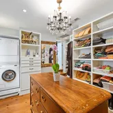 Originally built in the late 1700s, it has undergone a comprehensive restoration and renovation over the past 20 years, all while maintaining the authenticity of its historical character to the most minute detail. As you cross the front door's threshold, you are immediately transported to a bygone era. The architectural features, design elements, and overall ambiance evoke a sense of history and nostalgia that seamlessly blend with modern touches. The unique entrance door, handcrafted with pegs - not a single nail - from wormy chestnut dating back to 1800, and the solid brass dolphin door knocker that reflects the maritime heritage of Alexandria are just a few examples of the exquisite care and attention given to this home. The interior is equally captivating, with 5 restored fireplaces, original heart pine floors, and many other original features brought back to modern standards. Upstairs, improvements such as the custom built-in marble topped dresser, comfortably renovated sunroom/office, and updated bath offer functionality and character. The first level of the addition smoothly unites history, craftsmanship, and culinary artistry. This harmonious fusion of design influences reflect the owner's culinary career, artistic education in the US and Italy, and travel through Europe and the UK, creating a space that is both aesthetically pleasing and inspiring. Modeled after the British "unfitted" kitchen, it begins with the eat-in dining area, complete with original colonial fireplace, restored to its former glory and effortlessly integrated into the space. The kitchen is outfitted with high-end appliances and chef-designed storage areas adjacent to the center island. This island is the heart of the kitchen and will surely delight the most discriminating chef. Composed of three different work surfaces, the island offers a kidney-shaped Carrara marble surface for pasta and pastry, a slate counter and hammered nickel sink for vegetable prep, and a kidney-shaped maple and walnut cutting board for preparing meats and fish. Woods from Europe and the US create the custom cabinetry designed to fit all of your kitchen tools and equipment. No doubt it will become your perfect setting to cook, entertain, and spend evenings with friends and family. The den is situated at the far end and offers a cozy, inviting space to entertain friends, unwind, read, or enjoy a relaxing cup of tea. Its proximity to the work area allows for guests to engage with the chef as their meal is prepared, with a serene view of the garden through the French door. The addition's back staircase leads to an incomparable Primary Suite. Its bedroom features reclaimed wormy chestnut floorboards, a Juliet balcony overlooking the extensive rear garden, and a meticulously restored paneled pine door with a hand-forged handle and knocker from the early 1800s. The Primary Bath is an award winning masterpiece in contemporary design, featuring a custom-made Japanese stainless steel soaking tub with two waterfall faucets, glass-enclosed rain and hand-held showers, and heated tumbled slate floors. The transition room from the original home to the addition on this second level was converted into a spacious walk-in closet with custom cabinetry, ample shelving, clothes hanging sections, and a dedicated laundry area.