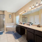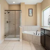 - Interior Features: Breakfast Bar, Crown Molding, Double Vanity, Granite Counters, High Ceilings, Kitchen Island, Kitchen Family Room Combo, Bath In Primary Bedroom, Pantry, Soaking Tub, Separate Shower, Tub Shower, Ceiling Fans, Programmable Thermostat