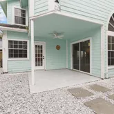 The backyard features newly installed tile under a covered patio overhang and is fully fenced in. Residents enjoy a secure, well-maintained community with amenities designed for an active lifestyle, including multiple pools and recreation courts.