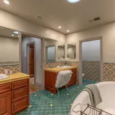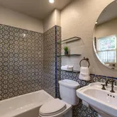 - Room Bathroom Features: Remodeled, Main Floor Full Bath, Bathtub, Walk-in shower, Privacy toilet door, Exhaust fan(s), Double Sinks in Primary Bath, Tile Counters, Shower