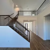 Photos are representative of plan and may vary as built. Take a tour of the stunning Homer floorplan at Rosenbusch Ranch in Leander, TX. The Homer is a two-story floor plan offering 3,008 sq. ft. of living space across 5 bedrooms, 4 bathrooms, and a loft. The long foyer leads into a spacious family room overlooking the kitchen and dining area. The kitchen features Silestone® or quartz countertops, stainless steel appliances, decorative tile backsplash and a large kitchen island. The large main bedroom, bedroom 1, is off the family room and offers separate tub and shower and huge walk in closet. Making your way upstairs, you will be impressed by the spacious loft that overlooks the living area and kitchen below. Transform this loft into a space of your choosing such as a media room, game room, or home gym. You will also find 3 more bedrooms upstairs and 2 full bathrooms. Each bedroom has carpeted floors and a closet. This home comes included with a professionally designed landscape package and a full irrigation system as well as our Home is Connected base package that offers devices such as a Video Doorbell, Deako Smart Light Switch, a Honeywell Thermostat, and more.