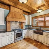 The heart of this home is the gourmet kitchen, complete with a solid wood hood, gas stove, Bosch dishwasher, soft-close cabinetry, and an extensive pantry with electrical hookups for your larger appliances. Whether you're hosting a dinner party or preparing a family meal, this kitchen is designed to impress.