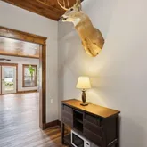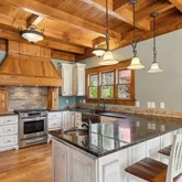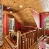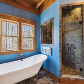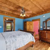 The master suite is a true sanctuary, featuring stunning custom Italian tile work from floor to ceiling in the shower, along with a luxurious cast-iron tub. It's the perfect retreat after a long day on the water or continuous relaxation in your Norris Lake Getaway.