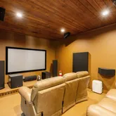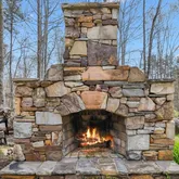 Entertainment options are endless with a dedicated theater room and a walkout basement that leads directly to your backyard paradise. Outside, you'll find a custom stone fireplace and stone walkway, creating the perfect ambiance for relaxing evenings or social gatherings. Enjoy the sounds of the water flowing from your own well, which is cleverly designed to create a natural creek, and take advantage of the outdoor shower for a refreshing experience.