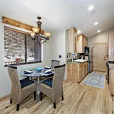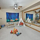 Spanning an impressive 5,600 square feet over three levels, the main home exudes timeless charm and comfort. At the heart of the home lies the breathtaking living room, crowned by soaring vaulted ceilings and anchored by a warm, inviting fireplace. Complementing this space is a gourmet Master Chef kitchen, impeccably designed with top-of-the-line Viking appliances, including a state-of-the-art Kobayashi grill, and generous counter space to inspire your culinary creations. Hickory wood floors and high-vaulted peeler pole beam ceilings enhance the cozy ambiance, while floor-to-ceiling windows flood the space with natural light and breathtaking views. The main-level primary suite is a personal retreat, complete with a cozy fireplace, a luxurious jetted tub, a spacious walk-in shower, double sinks, a massive walk-in closet, and heated bathroom floors. Lower Level: A Haven of Comfort and Versatility