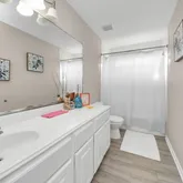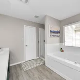 - Interior Features: Double Vanity, High Ceilings, Jetted Tub, Kitchen Island, Kitchen Family Room Combo, Pantry, Separate Shower, Ceiling Fans, Programmable Thermostat
