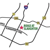 - Directions: From IH-35, go east on Slaughter Ln for 2 blocks, The Ridge at Slaughter will be on your left. Drive into property at main entrance follow around to back of complex on right. #1801 will be down on the right at corner.