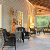 The Cottage, originally built in 1978 with additions in 1985 and 2002, is wrapped with deep screened-in porches, and features a dramatic living room with soaring ceilings and a Rumford fireplace. It's a place where one could imagine the likes of Truman Capote, Robert Penn Warren, and Alice Walker trading stories around the fire, sipping a fine whiskey.