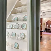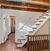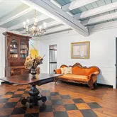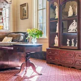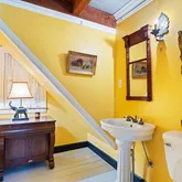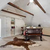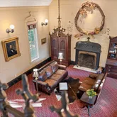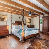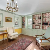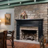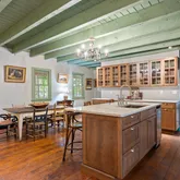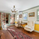 A second and third fireplace anchor both the kitchen and the home's original "summer kitchen," now reimagined as an intimate speakeasy and wine room. Down a short hallway lies the powder room and an office that opens to the back porch. Upstairs, you find the main bedroom and bath, a charming library, and a loft with closets that doubles as another bedroom.