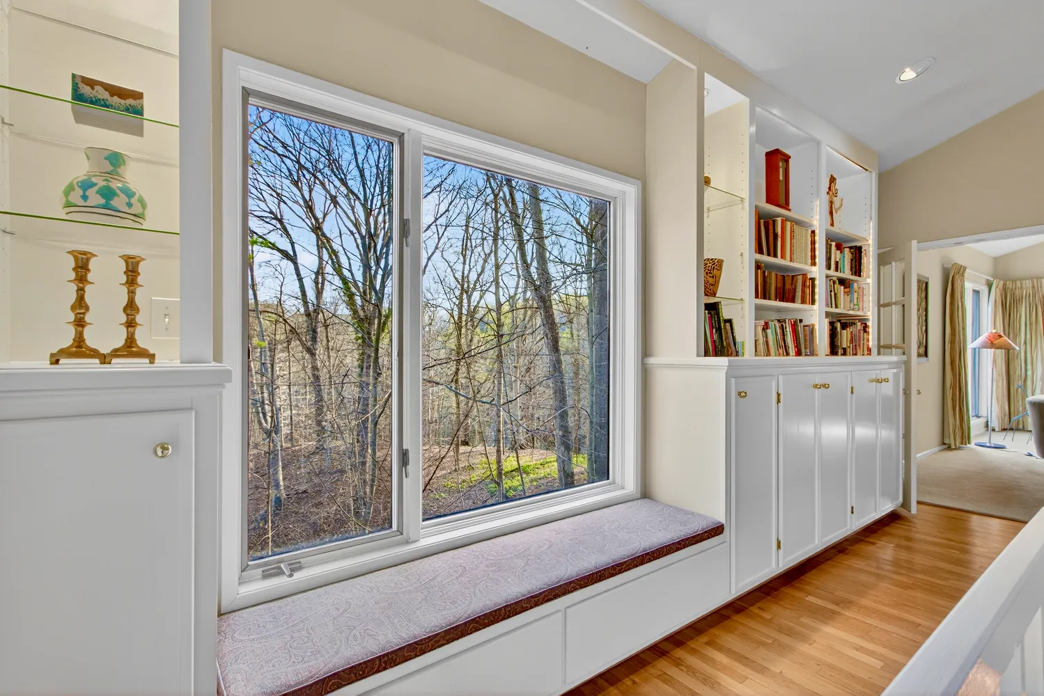 At the heart of the home, the kitchen is thoughtfully designed and well-appointed, anchored by a central island and surrounded by generous cabinetry and workspace. A glass-enclosed breakfast area extends into the landscape, offering a true indoor-outdoor experience with direct access to the deck and nature. Here, entertaining becomes effortless, with mature landscaping and a peaceful, wooded backdrop.