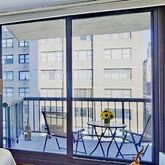 The pass-through windowed kitchen has granite countertops, stainless steel GE Profile appliances and opens up to a spacious dining and living room with bright southern and western exposures. The oversized marble bathroom has a west facing window, a large tub and a separate walk-in shower. The master bedroom, which can easily accommodate a king-size bed with plenty of room left over to set up a home office, has ample closet space and access to the spacious balcony with room for tables and chairs.