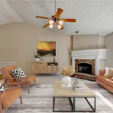 Open-concept design with vaulted ceilings and fireplace