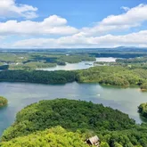 The MAIN-LEVEL living room is highlighted by a floor-to-ceiling stone fireplace with gas logs and framed by picture windows showcasing the SCENIC backdrop. The owner’s suite is also on the main level, offering mountain views and a luxurious en-suite with HEATED tile floors throughout the bathroom and California closet, a freestanding soaking tub with views of the mountains, tile shower, and custom vanity with generous storage. A private office with custom wood-paneled walls and built-ins, plus a mudroom and laundry area off the side entry, complete the main level. UPSTAIRS, a cozy loft offers mountain and seasonal water views. Two guest bedrooms each feature private, updated en-suite baths. The LOWER LEVEL includes a fourth bedroom with views and deck access, an additional updated full bath, a spacious den with a dramatic wall-to-wall stone fireplace, a game room with wet bar, a gym, and a media room that can serve as a fifth bedroom. Two oversized storage rooms provide abundant space for seasonal décor and more. This BEAUTIFULLY landscaped home is part of a DESIRABLE community with access to a pool, tennis courts, and clubhouse—perfect for those seeking LUXURY, COMFORT, and VIEWS at every turn—and it’s less than 5 minutes from I-75 and approximately 10 minutes to the Park Marina, Allatoona Beach, Lakepoint Station, and Red Top Mountain State Park. The home is also equipped with a whole-house generator, providing peace of mind during power outages. DON'T MISS your chance to tour this beautifully remodeled home—featuring stunning updates throughout, including the kitchen, bathrooms, closets, mudroom, shiplap walls, and so much more. Come see it for yourself and fall in love with all the fresh, modern touches!
