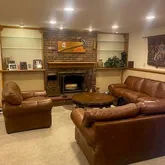 - Room Description: Charming family room with recessed lighting and wood-burning fireplace, has adjoining full bathroom.