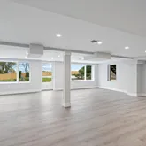 - Room Description: Finished basement with plenty of room to use as play / party room or exercise room and big window with view of back yard and pool with sliding door and open door to back yard.