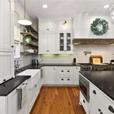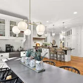 - Kitchen Features: Cabinets White, Kitchen Island, Pantry, Stone Counters, View to Family Room