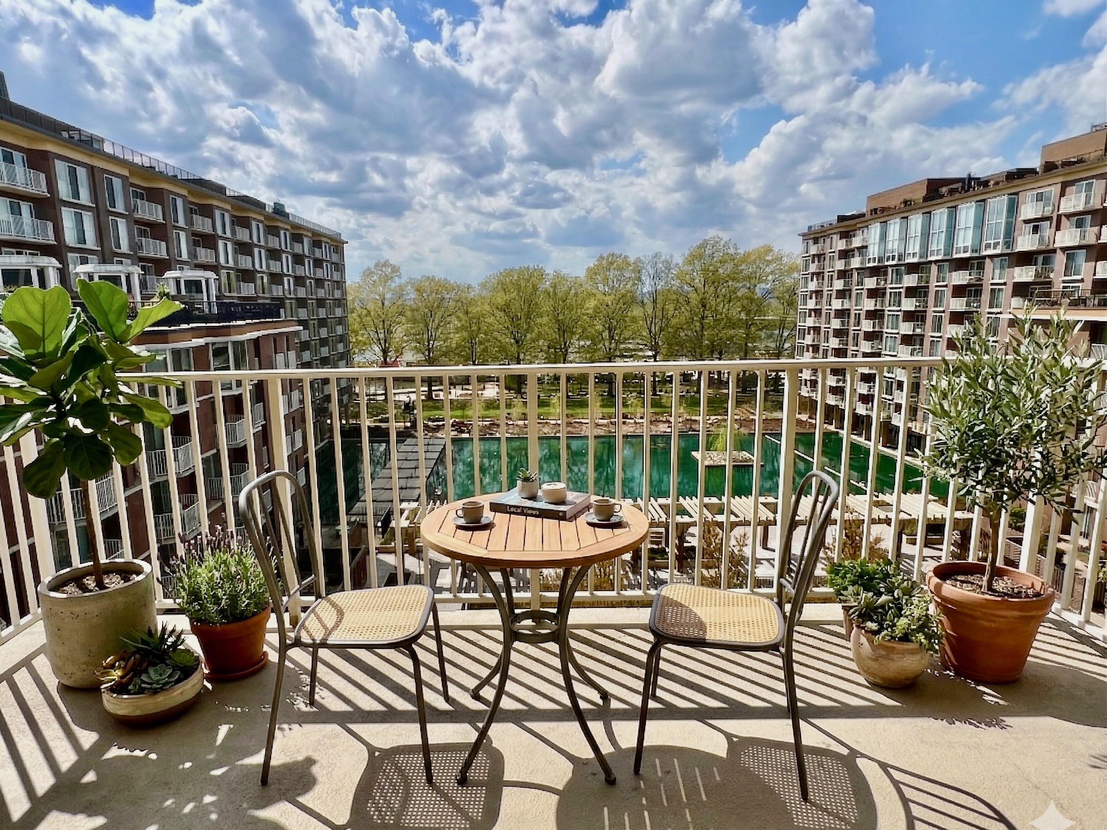Be greeted by a wall of windows and sweeping vistas. This junior 1BR co-op boasts one of the best assets in the city: an extra-large, west-facing balcony overlooking the gorgeous property green spaces and water feature...and beyond.