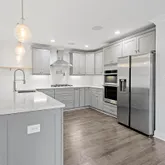 The open layout is made for real living--easy mornings, lively gatherings, and everything in between. The chef's kitchen is a showstopper, featuring sleek cabinetry, premium appliances, a wall oven, an oversized island, and a statement pot filler that feels straight out of a designer magazine.