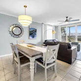 One of the biggest highlights is the convenient first floor location. No stairs or elevators to deal with. Just step outside and you are moments from the pool, beach, and on site amenities, which is a major plus for families and guests of all ages. This is also a desirable corner unit, offering added privacy and a more open feel. The condo features the largest patio in the complex, perfect for spreading out, enjoying morning coffee, or relaxing after a beach day. Direct access to the sugar white sand and emerald waters of the Gulf makes it easy to enjoy everything the Emerald Coast is known for.