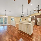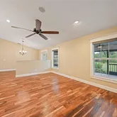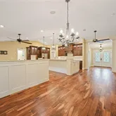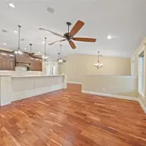 - Interior Features: Cathedral Ceiling(s), Ceiling Fan(s), High Ceilings, Kitchen/Family Room Combo, Living Room/Dining Room Combo, Open Floorplan, Primary Bedroom Main Floor, Solid Wood Cabinets, Split Bedroom, Stone Counters, Thermostat, Walk-In Closet(s)