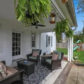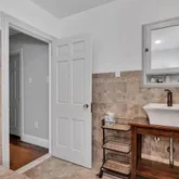 A slate floored vestibule opens to the foyer and staircase. The spacious living room features a gas fireplace and French doors leading to a covered side porch, creating a wonderful additional outdoor living space. The...Spacious 5 bedroom, 3.5 bath Tudor style home in the sought after Drexel Park neighborhood with a detached two car garage and inviting outdoor spaces. Classic architectural details throughout the home include arched doorways, deep windowsills, hardwood floors, and original built ins.