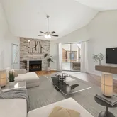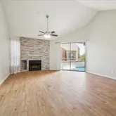 fireplace and private balcony. Very quiet complex with many long-term neighbors. Sparkling pool was just redone including all new pool furniture, complete roof replacement...Charming 3rd floor, 1 bedroom unit with vaulted ceiling and has been recently updated. Wood-look tile floors