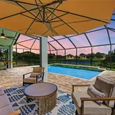 The private backyard is highlighted by a saltwater pool and generous covered lanai overlooking a pond and preserve. Pool equipment has been recently updated, including the pump, filter, panel, and salt system.
