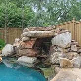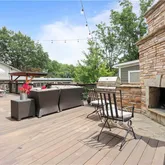area, and a wet bar featuring a stunning waterfall wall! Step outside to your private paradise—an expansive deck