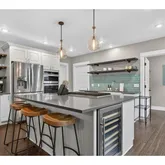 - Kitchen Appliances: Cook Island, Cooktop, Disposal, Free Standing Refrigerator, Gas Appliances, Island, Microwave, Pantry, Plumbed For Ice Maker, Quartz, Stainless Steel Appliance