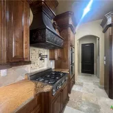 A custom copper vent hood and large farmhouse-style sink. Six-burner gas stove and double ovens. Abundant custom cabinetry, granite countertops, and a wine refrigerator. Primary Suite: Located on the main level with luxury crown moldings, a spa-like bathroom featuring dual-headed showers and a separate tub, and "his and hers" walk-in closets. Specialty Rooms: Formal Study: Includes coffered beam ceilings and direct access to a guest half-bath. Climate-Controlled Dog Room: A unique, dedicated space for pets that is both heated and cooled, with its own private access to the backyard. The Grounds: The 1.45-acre lot is landscaped with a "nature garden" feel, featuring small walking trails and a rocking chair area positioned to overlook the valley from the upper hill. A large outdoor space with a custom stone gas fireplace and a built-in BBQ grill, Owner changed into gorgeous formal dining room, perfect for large-scale formal parties or casual gatherings. Mediterranean-style tile roof with an exterior blend of masonry, plaster, stone veneer, and stucco. 4-Car Oversized Garage: Includes insulated doors, step-up storage space, and ceiling-mounted racks. Equipped with an EV charging station and a tankless water heater. Mudroom: A convenient entry point from the garage into the main home.
