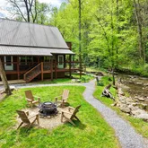 - Directions: From Highway 321 turn right on to Rocky Flats Rd. After 1 mile turn left on to Mathis Branch Rd. After 0.2 miles the cabin will be on the left beside Dunn Creek. Look for the sign.