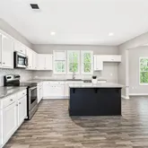 - Kitchen Features: Cabinets White, Kitchen Island, Pantry, Solid Surface Counters, Stone Counters, View to Family Room
