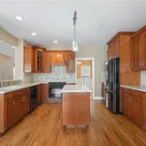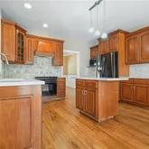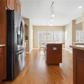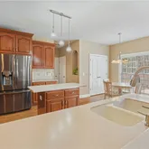 - Kitchen Features: Cabinets Stain, Eat-in Kitchen, Kitchen Island, Pantry, Solid Surface Counters, Stone Counters, View to Family Room